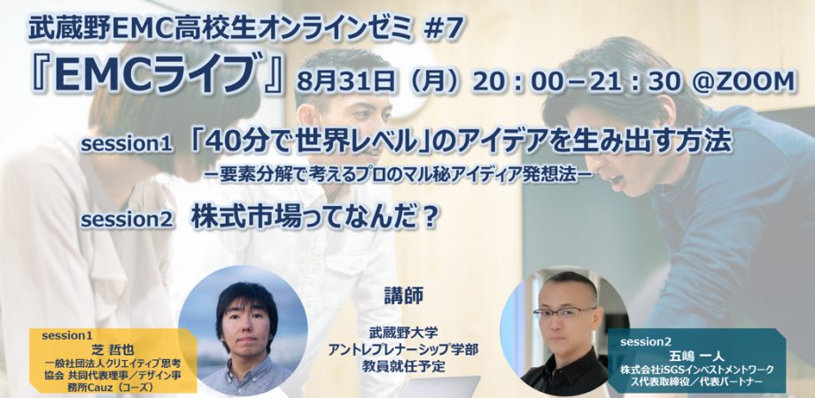 武蔵野EMC高校生オンラインゼミ #7『EMCライブ』「40分で世界レベル」のアイデアを生み出す方法/株式市場ってなんだ?