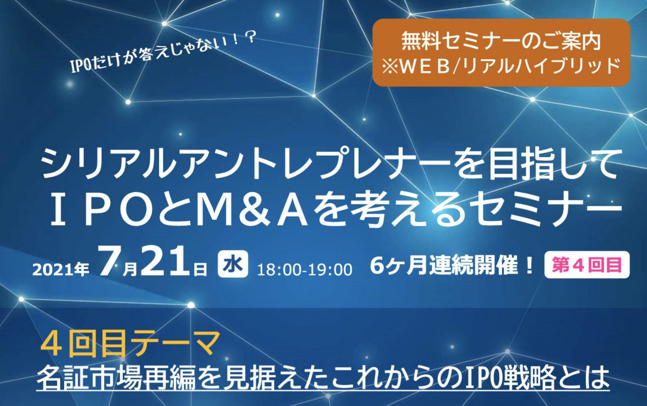 【全6回・7/21「IPO:M&A比較検討 2.実行期間」】IPOだけが答えじゃない!? シリアルアントレプレナーを目指して IPOとM&Aを考えるセミナー