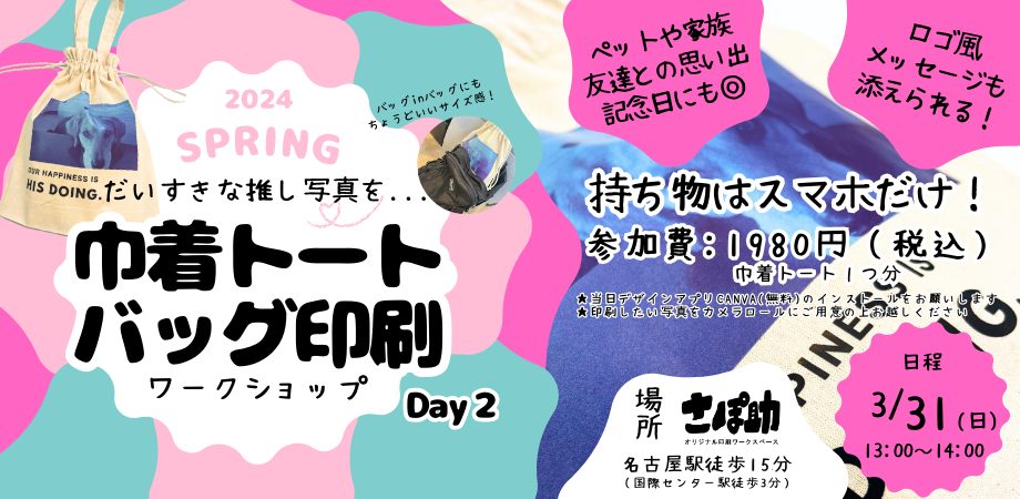 2Days|OPEN記念|巾着トートバッグ印刷ワークショップ