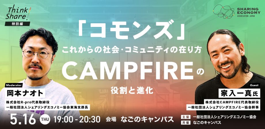 【シェアを聞く・学ぶ・深掘りするリアルイベント!Think Share!】特別編「コモンズ」これからの社会・コミュニティの在り方 / CAMPFIREの役割と進化:株式会社CAMPFIRE代表取締役 家入一真氏