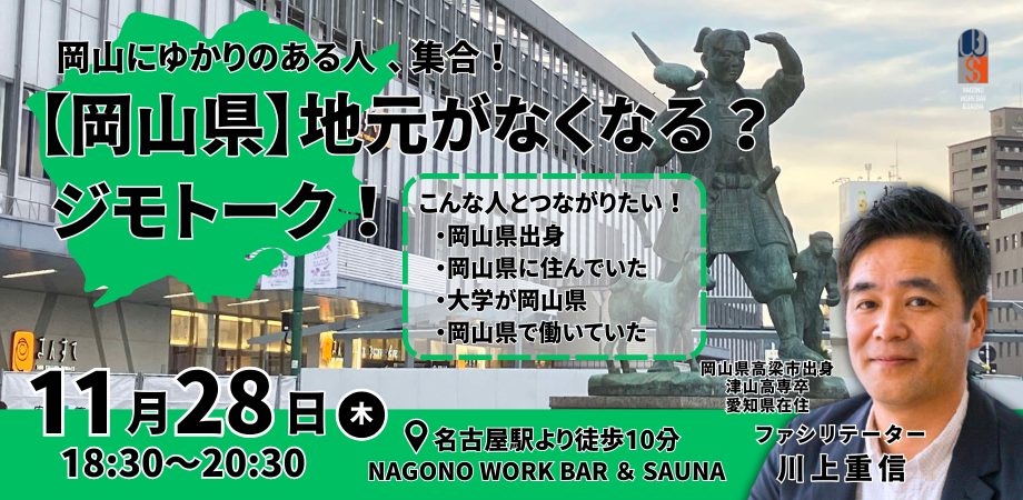 岡山県出身、大学が岡山県だった、岡山県で働いていたことがある。 など、岡山県にゆかりのある人と仲良くなれるイベントです!