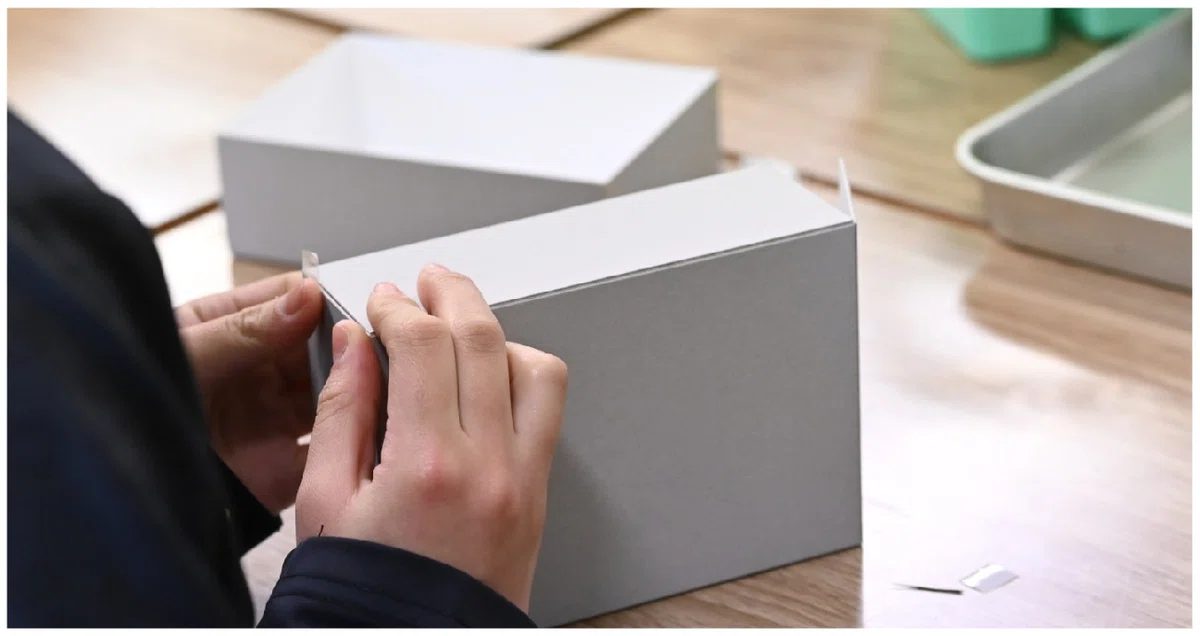 貼り箱を知っていますか?貼り箱は高級ギフトボックスとして使用される丈夫でしっかりとした箱。実は、1枚の厚紙から職人の手により作られています。 何気ない日常にある伝銃の「ものづくり」は、日本の歴史の中でおもてなしの心が作ってきた歴史でもあります。ワークショップでは明治から続く技法を使って、小物入れにもなる引出し箱を作ります。