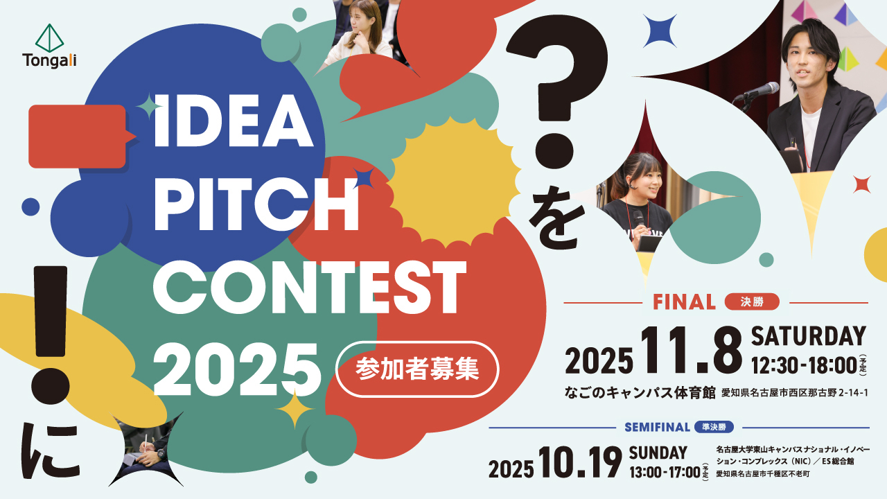東海地区の27大学で構成するアントレプレナーシップ教育コンソーシアムTongali主催のアイデアピッチコンテスト。