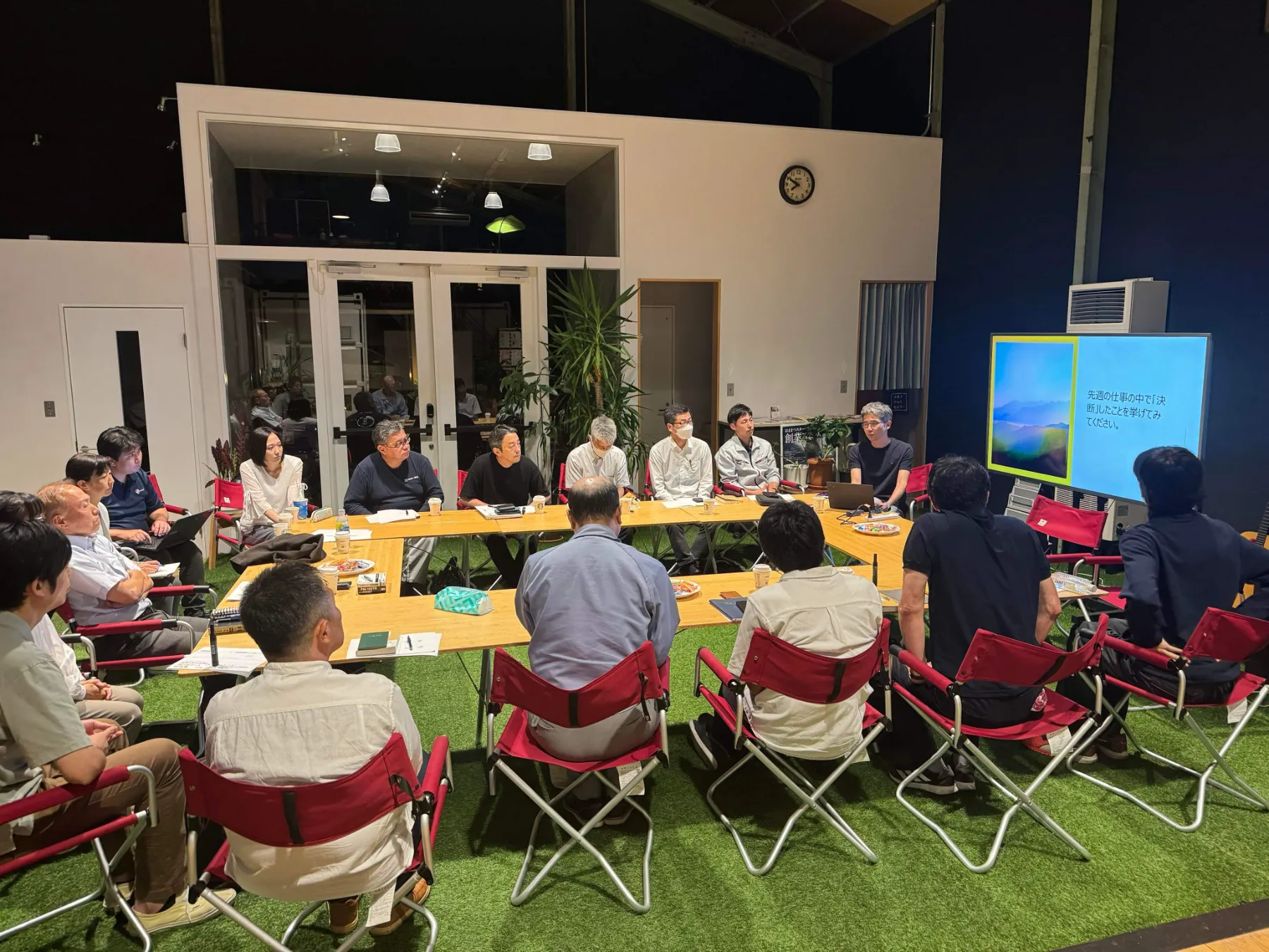 2ヶ月に1度、金曜日の夜に開かれる学びの場。各回のテーマに合わせ、参加者それぞれが意見を出し合いながら、双方向のコミュニケーションを重視した越境学習の場となっています。NOKIOOの本社所在地であり、地域のイノベーション拠点でもあるGarageというスペースでオフライン開催しています。