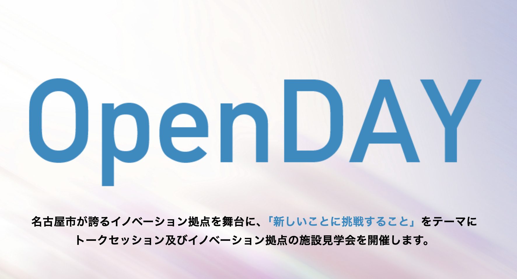 イノベーションを実現する人材が育ち・集い、進化し続ける都市を目指すため、名古屋市が誇るイノベーション拠点にて著名人によるトークセッションと施設見学を行う「Open DAY」が開催されます。