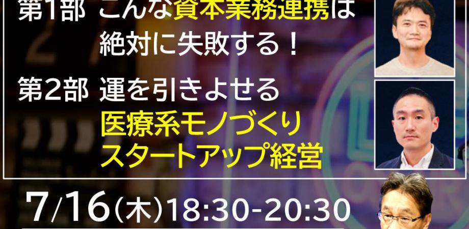 【オンライン参加】【大江橋北詰ホンマモン計画~vol.27】『第1部・こんな資本業務連携は絶対に失敗する! /第2部・運を引き寄せる医療系モノづくりスタートアップ経営の話』