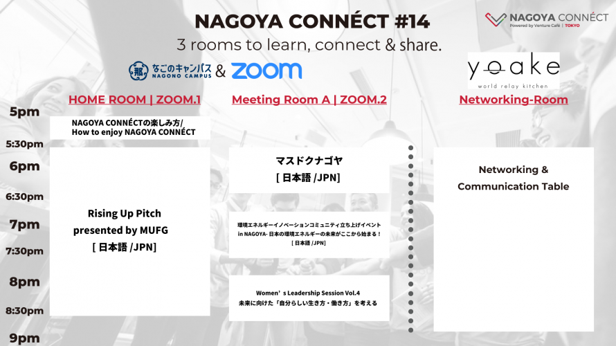 ※本イベントは新型コロナウイルス感染症予防対策を徹底し、「なごのキャンパス」とオンライン上で開催致します。愛知県名古屋市の感染状況によっては、すべてオンラインのSessionとなる可能性がございます。予めご理解・ご了承の程よろしくお願い致します。