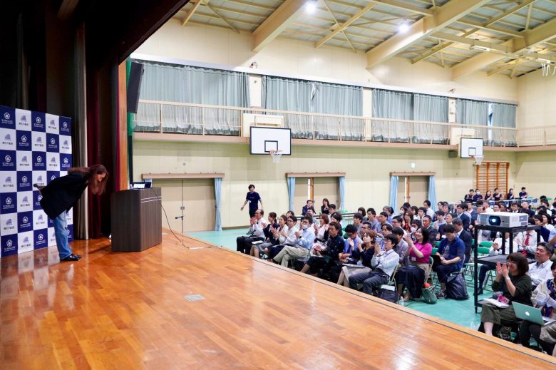 なごのキャンパスは、もともと小学校だった施設をリノベーションして産まれたインキュベーション施設。今回のイベントも、旧小学校の面影そのままの体育館で開催されました!