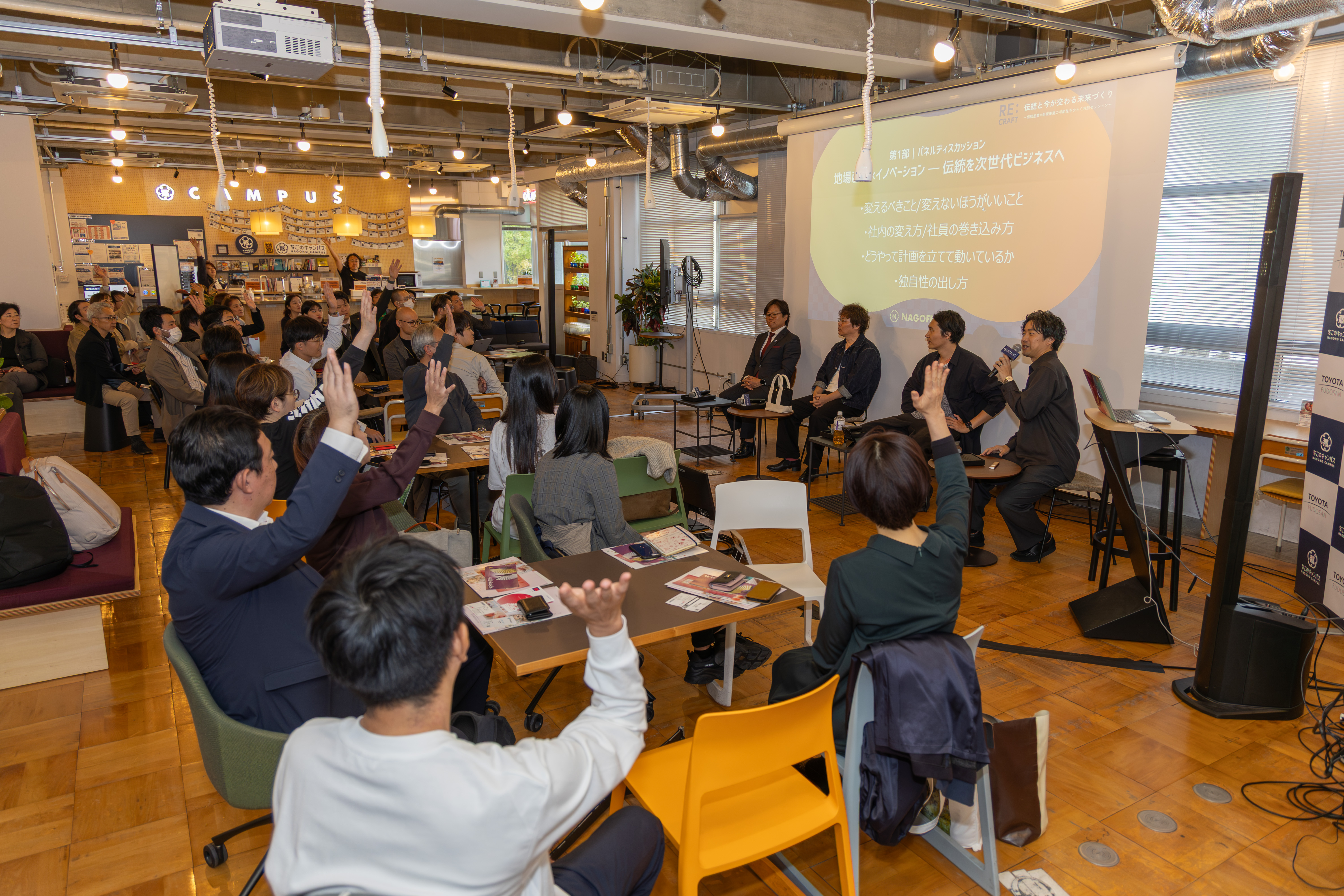 ゲストには、飲食事業や被服・服飾など、東海エリアで長く息づくさまざまな老舗企業の代表が集結。地域に根ざした伝統産業や地場技術を現代の感性やニーズに合わせてアップデートし、新たな価値を生み出す可能性を探る時間として、「伝統産業の今」を参加者とともに考え、語り合いました。