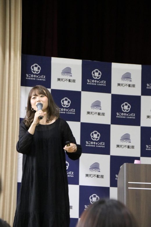 冒頭、なごのキャンパスのコワーキングスペースやオフィス環境、その他レンタルスペースなどの施設概要のご案内があり、そしてお待ちかね小林さやかさんの登壇です。