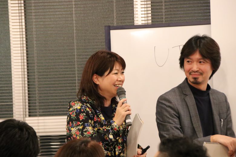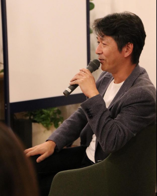 粟生さんはAIベンチャーを創業したり、大手企業で役員をしたり、また、今回の会場であるなごのキャンパスの「運営企画プロデューサー」でもあります。今回唯一の女形めたもん。