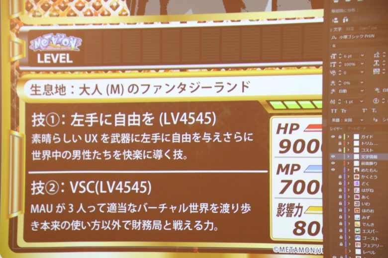- めたもん=メタモルフォーゼスモンスター。企業内にいる異能人材のこと